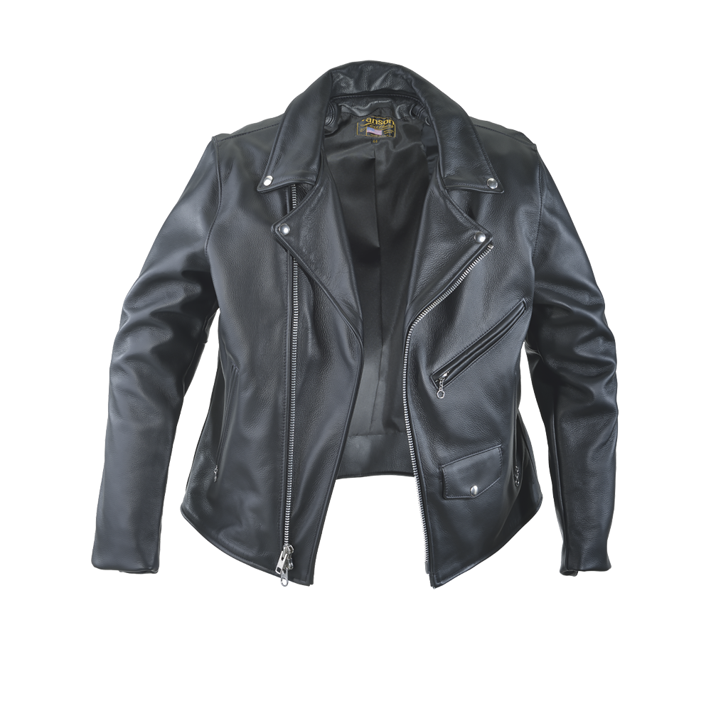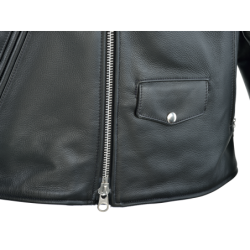 Renegade JacketThe Vanson RENEGADE leather motorcycle jacket is a circa-1948 Brando-style jacket in its most slim and elemental form. Clean lines, no belt, no belt loops, no action back – just a slim trim jacket reduced to its understated essence. The two-way front zipper can help ease the fit depending on your riding position. Inside the right front, a deep horizontal wallet pocket securely holds valuables. Full-leather inside facings and lapels help complete the details that make this a simple, functional and elegant jacket.