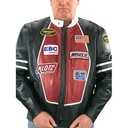 Leather motorcycle jacket with competion patches and Ovals