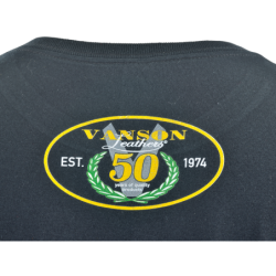 The Vanson’s V-Race Tee Shirt (UT1 BLK) is a limited-edition graphic tee crafted from 100% cotton for comfortable, everyday wear. Featuring a bold RaceFlag design, this look-back Anniversary shirt celebrates “74” — the founding year of Vanson Leathers.
