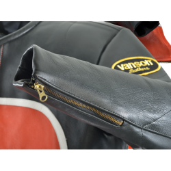 Born from the DNA of 1980s American flat track competition, this jacket wears its history the way a racer wears scars: earned, not applied. The beaded collar, the bold Vanson oval, the unmistakable V-in-circle — each detail echoes pit crews, privateer teams, and riders who lined up shoulder to shoulder with nothing but throttle and nerve between them.