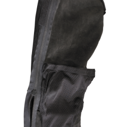 Bottom of Outseam zipper is covered by a flap extension secured with velcro