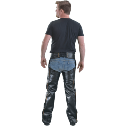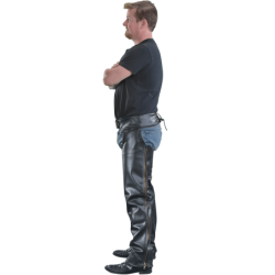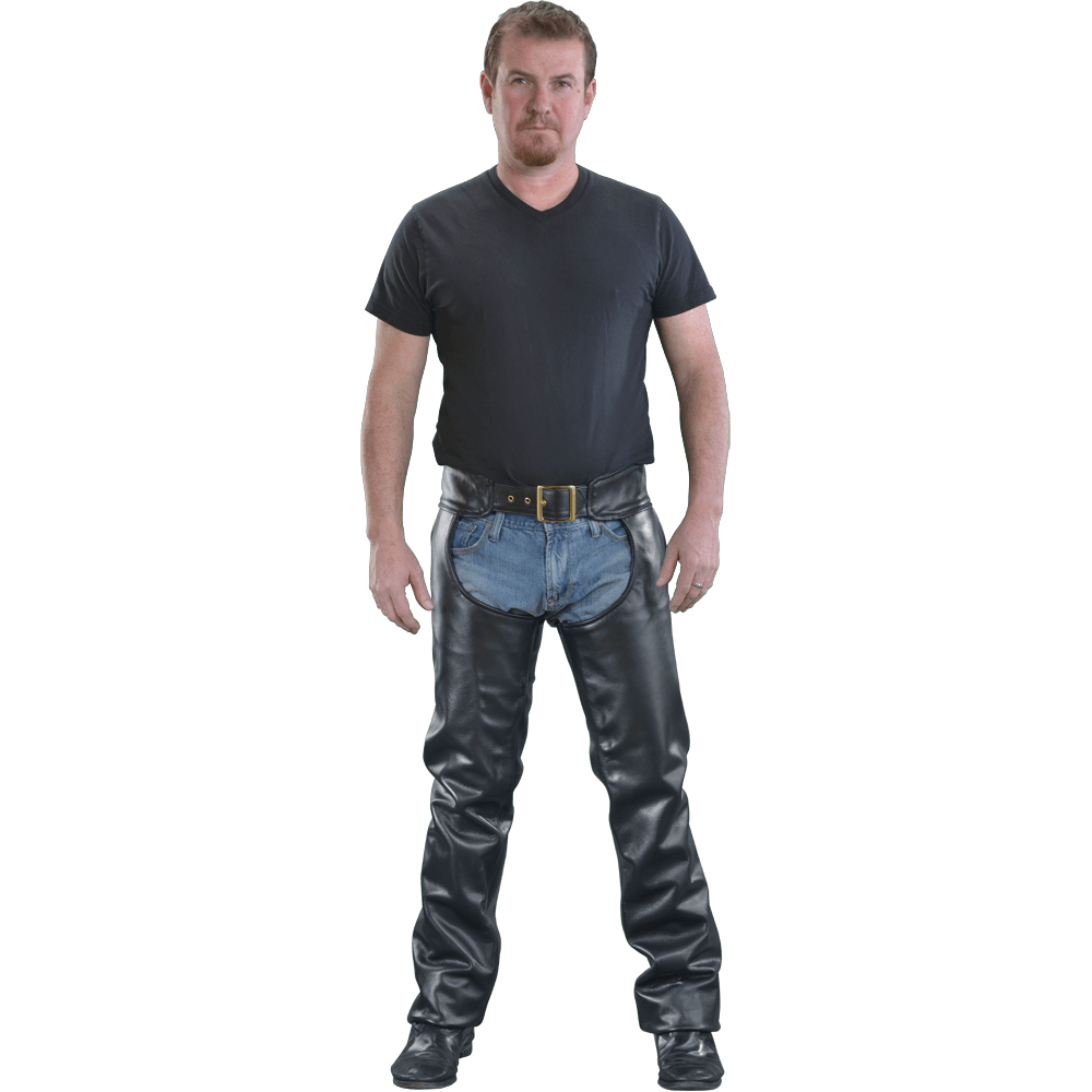 Made from premium top-grain black competition weight cowhide, Vanson Leather Motorcycle Chaps feature full-length solid brass zippers on the outseams, set slightly up the leg, so as to allow for easy trimming and hemming.