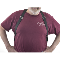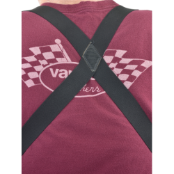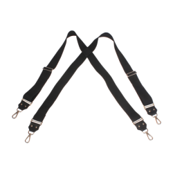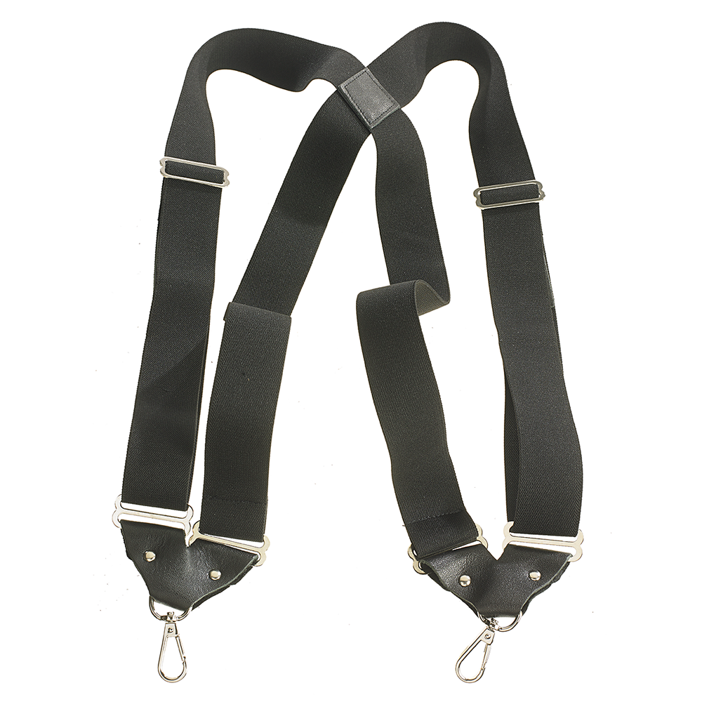 Fit (lengths) and elastic tension are controlled by sliding the adjuster-ovals up and down the front legs, The elastic we use is 1.5 inches wide for optimal strength and comfort over the shoulders.