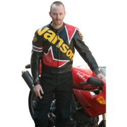 A 1960's-inspired supergraphic Vanson logo adds twist and shout to the classic flat-track symbol. And just like the label on a certain quality brand of Scotch, it'll annoy those who like everything in the straight and narrow.