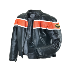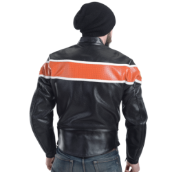 It's a proper, uncompromising Sportrider jacket, stripped-down to the basics but armor-ready, and with the adjustable suede waist. Plain front and sleeves, and a Harley-Davidson orange flat-track inlay around the chest and biceps. Very traditional, very protective.