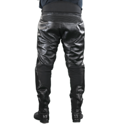 Made from tough competition-weight cowhide with pre-installed hip and knee VanTech CE armor (Floating Armor System US Patent 6070274), the goal is security and comfort while riding in a tucked-in position on a European-style tourer or sportbike. The racing-suit heritage is unmistakable. Specially-made Kevlar® cloth is inlayed at the crotch and runs down the legs along the inner thighs. Even the fly zipper has been set in to the front of the pants without any extra overflaps and bulk. The seat is reinforced with a 1000 denier Cordura layer on the inside for added protection with comfort and low bulk. Doubled leather is used at the knees, with both the underleg and top-of-knee areas sculpted for comfort in the riding position. The athletic mesh lining is removable to facilitate washing, changing or maintenance. Velcro fields for knee pucks are standard equipment and will accommodate the UHMW (Ultra-High-Molecular-Weight) pucks for excellent road feel without grabbing. The waistband is fully adjustable for the most comfortable fit with a built-in padded kidney support area at the rear. Lower down the legs, the fit is tapered with Kevlar® insets from behind the knee, along the calf to the ankle for a snug inside-the-boot fit. Ankle zippers are at the rear calf area for comfort and convenience.