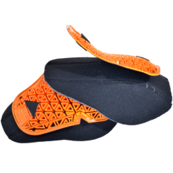 The concept of this system is to both disperse and absorb the force of repeated impacts while providing the best protection. In order to achieve this, it is important that the armor remains in the proper position relative to the body and does not shift even during a crash. To best achieve this the foam pad becomes an acute shape cradling the armor inside the curve and holding the CE armor snugly against the riders' body.