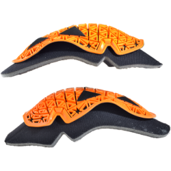 The concept of this system is to both disperse and absorb the force of repeated impacts while providing the best protection. In order to achieve this, it is important that the armor remains in the proper position relative to the body and does not shift even during a crash. To best achieve this the foam pad becomes an acute shape cradling the armor inside the curve and holding the CE armor snugly against the riders' body.