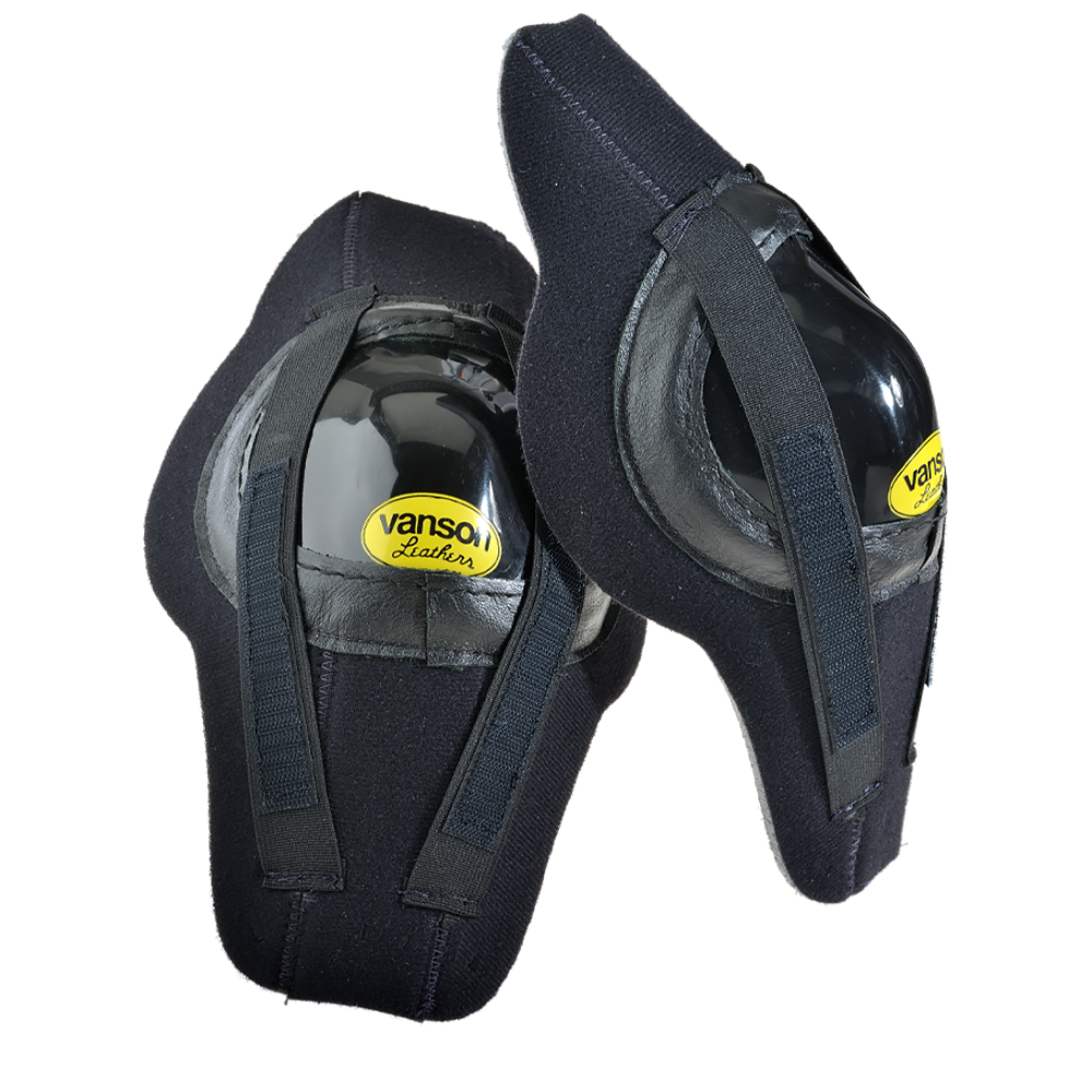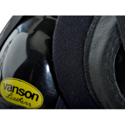 Vanson builds the best hard armor in the business. We start with quarter inch closed cell foam that has been laminated to Velcro compatible tricot on both sides. This is cut to shape using our water jet, with opposing concave curves so that when sewn together the foam assumes the finished shape of the armor piece. The stitching of the foam shapes is done with a specially adjusted zig-zag stitch so as not to either compress the foam in the seam area or to have a thick, bulky, and uncomfortable seam. Custom molded HDPE (High Density Polyethylene) shapes then get smaller and softer closed cell foam inserts glued to the interior apexes of the HDPE shapes to make sure that the curved padding is extra full at the apex of the armor – right at the elbow points, the kneecap areas, and the end of shoulder bone areas. The HDPE shapes are then stitched to the shaped foam pads using a special machine that first punches a hole through all the layers and then follows through with an extra strong nylon thread. Then both the edges of the HDPE shapes and the attachment thread are covered by leather shapes double stitched to protect both the assembly from abrasion and to prevent the hard edges of the HDPE shapes from possibly coming into contact with the rider's skin. Onto this assembly elastic and Velcro are added for attachment to the matching fields inside the garment.