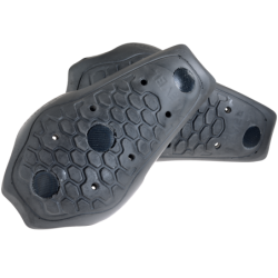 The concept of this system is to both disperse and absorb the force of repeated impacts while providing the best protection. In order to achieve this, it is important that the knee armor remain in the proper position relative to the body and not shift even during a crash. To best achieve this the foam pad becomes an acute shape cradling the armor inside the curve and holding the CE armor snugly against the riders' body.