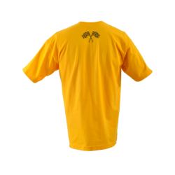 The Vanson Tire-Track Tee (UT4 GOLD) is a limited-edition graphic T-shirt crafted from 100% cotton for comfortable, everyday wear. Featuring bold Tire Track graphics, this look-back Anniversary design proudly highlights “74” — the founding year of Vanson Leathers.