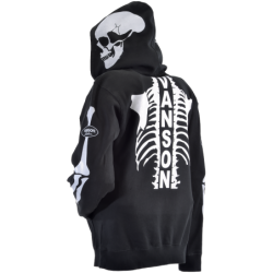 The Vanson Leathers Bones Zip Hoody (SWTB BLK) is a bold, heritage-inspired cotton zip-up sweatshirt that pays tribute to the iconic Vanson BONE motif — once so edgy that it drew controversy within the AMA. Built for laid-back style and everyday wear, it features striking Bones graphics with a Vanson Oval on the back and a skull graphic on the hood, as well as custom Vanson silk-screen art throughout. Functional details include a draw-string adjustable hood, knit waistband and cuffs, and a zip-front closure. Printed in the U.S.A. with imported fabric, this hoody blends classic Vanson attitude with comfortable, casual design.