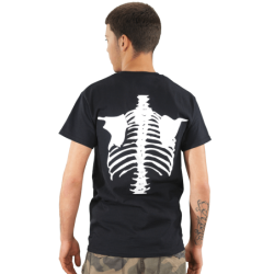 We start off with a beefy black cotton T-shirt, then add our infamous Skeleton print on the front and back.There's also a Vanson Competition Oval screened on the left sleeve. Who needs skin when you have bones like these!