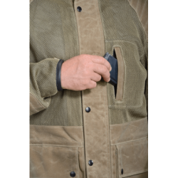 COYOTE TAN 1000 DENIER HEAVY DUTY MESH + FIELD TAN ARMY DUCK 1010 WAX COTTON are combined to create a unique hybrid jacket ideal for hot-weather riding. The Cordura mesh is very strong and abrasion- resistant while also allowing the maximum airflow. V251 COYOTE TAN HEAVY-DUTY VENT MESH High-tenacity 1000 denier nylon yarn is used to knit this mesh material. It is finished with a bonding treatment that enhances the strength of the material. . ARMY DUCK 1010 ( 10 oz. ) FIELD TAN Waxed Cotton Wax cotton combines breathability with water repellency which makes the material very comfortable in a wide range of conditions. Wax cotton can be reconditioned and re-proofed using the Vanson wax sold separately. Use a hair dryer to heat the area of the garment needing wax + work the wax paste into the Duck using a dry cloth and a circular motion. Note: Do not wash or dry-clean this garment.