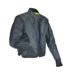 First Vanson is using a proprietary blend of soft structure high-density polyethylene quilted to 4.3 oz polyester knit. This mix allows wicking and helps create dead air spaces. Then we insert this assembly into a 200 denier nylon that has been sealed at the textile mill with polyurethane for water resistance, wind-proofness, and strength. This sandwich of materials makes for a very thin, lightweight, wind-proof garment ideal for use in a high wind environment such as motorycling.