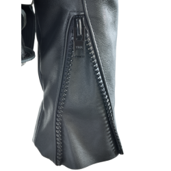 ZIRCON BLACK - Beautiful smooth grain 1.2 mm ( 3 oz. ) leather with a polished look and feel. Only the very best grade of skins can make this leather. This leather breaks in easily and as it does the look and feel develop and become unique to the garment. This is a sophisticated and elegant medium weight leather.