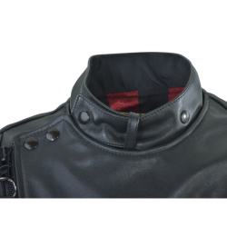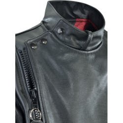 The Swedish Motorcycle Jacket was designed around 1915 for motorcycle riders of the Swedish army and police. Known for their large front pocket and a windproof, insulating collar, often coated with shearling they were often referred to as dispatch rider jackets or "Ordonnansjacka". Some jackets featured a detachable faux fur lining for versatility in different weather conditions. The asymmetrical front closure is also a notable design element, meant to block wind and prevent bunching while riding. Versions of the jacket from the 50’s and 60’s are prized by collectors.