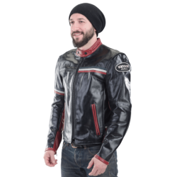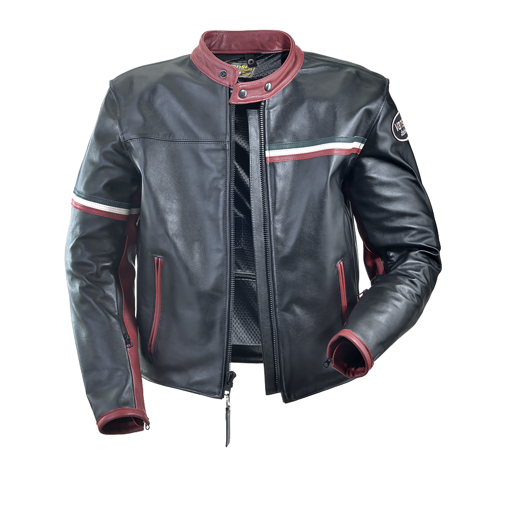 Inspired by the Italian bike scene, where street cool and fast bikes merged and were elevated into an urban art form. Conceived at a trattoria in Bologna, home of Ducati, fueled by a...I think...carafe of red wine, glass in one hand, pencil in the other, Marco explaining exactly which is the right shade of red...voila ...the ITALIA!CE-approved protection using the Vanson patented Floating Armor System at shoulders and elbows, with extra protection from a backpad sewn into a lining pouch.