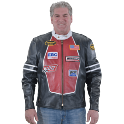 For us, it was a request/challenge/solution scenario. So we married the Star to the B - added the flair of flat track race-suit-style armbands to the sleeves and the signature inlay bib to the front. The result was a Vanson jacket with a custom racing suit look. Then we added actual competition-style inside patches to the elbows and sleeve caps and made it so the RJ, RJV, and RJP will accept the Vanson Streamliner snap-in vest as well.