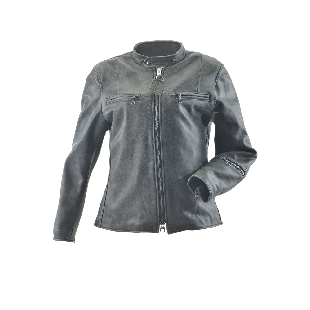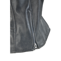 This just goes to show: you can be the nicest person and still make a dramatic dark statement in our very hip, very noir Villainess Leather Jacket.Cut for riding, this jacket is fit-adjustable with a two-way front zipper and zip-close sides with leather gussets, Removable and adjustable armor is pre-installed at the shoulders and elbows using our patented Floating Armor System. An optional back pad will fit into a special pocket in the lining.
