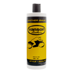 VANSON LEATHER BALM deeply penetrates stiff or dry older leathers, lubricating the fibers and restoring suppleness and luster. We recommend its use on newer garments too - to moisturize the leather and give it added suppleness. VANSON LEATHER BALM is also great for leather furniture, seats and saddlebags, vehicle interiors, anything leather.